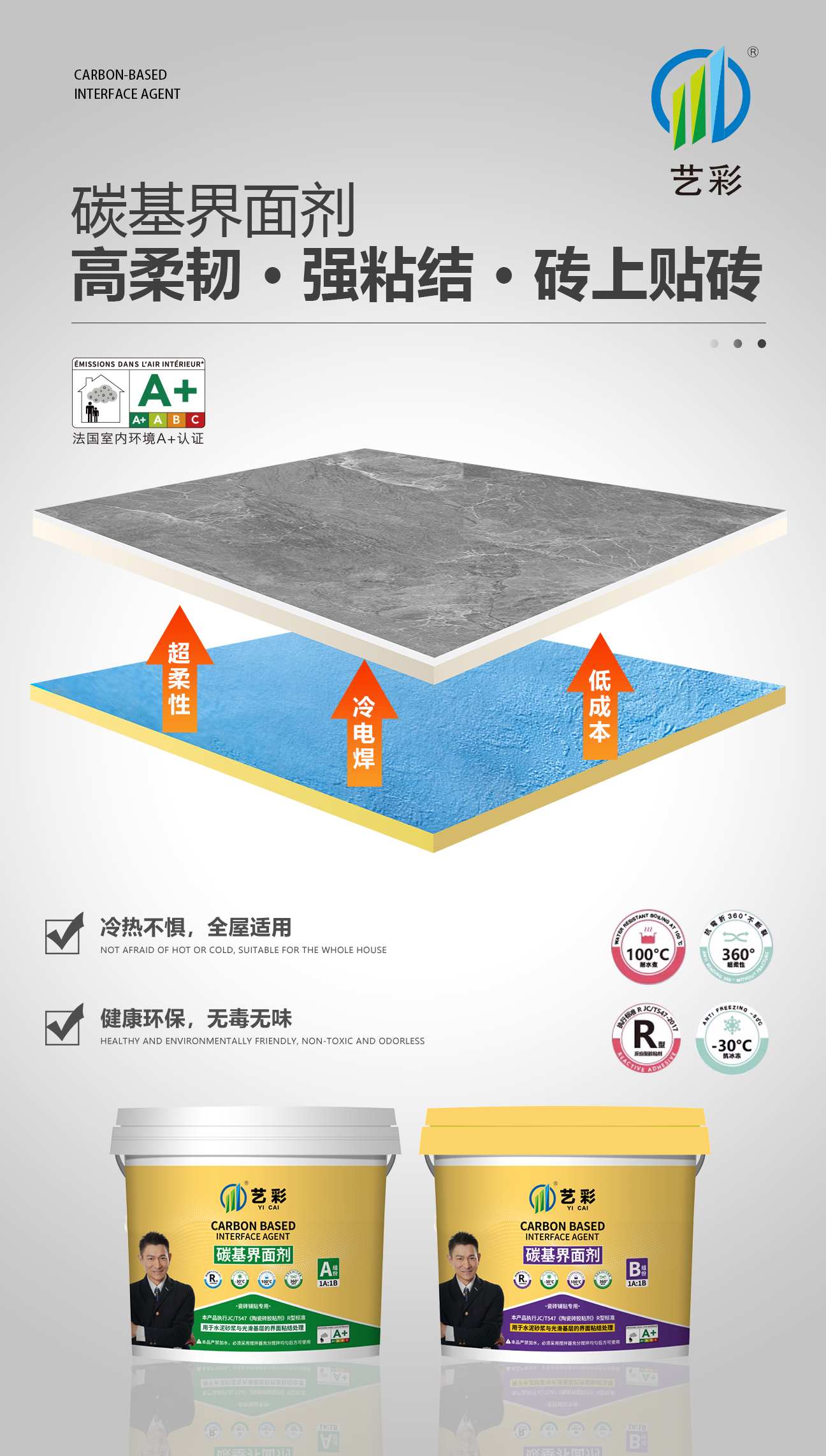 • 耐候性强:作为环氧树脂改性的柔性胶粘剂,能适应极端环境。经历100℃沸水煮泡和-30℃冷冻的数次循环后,仍保持3.1MPa的粘结强度,是传统C1C2瓷砖胶的20-30倍。